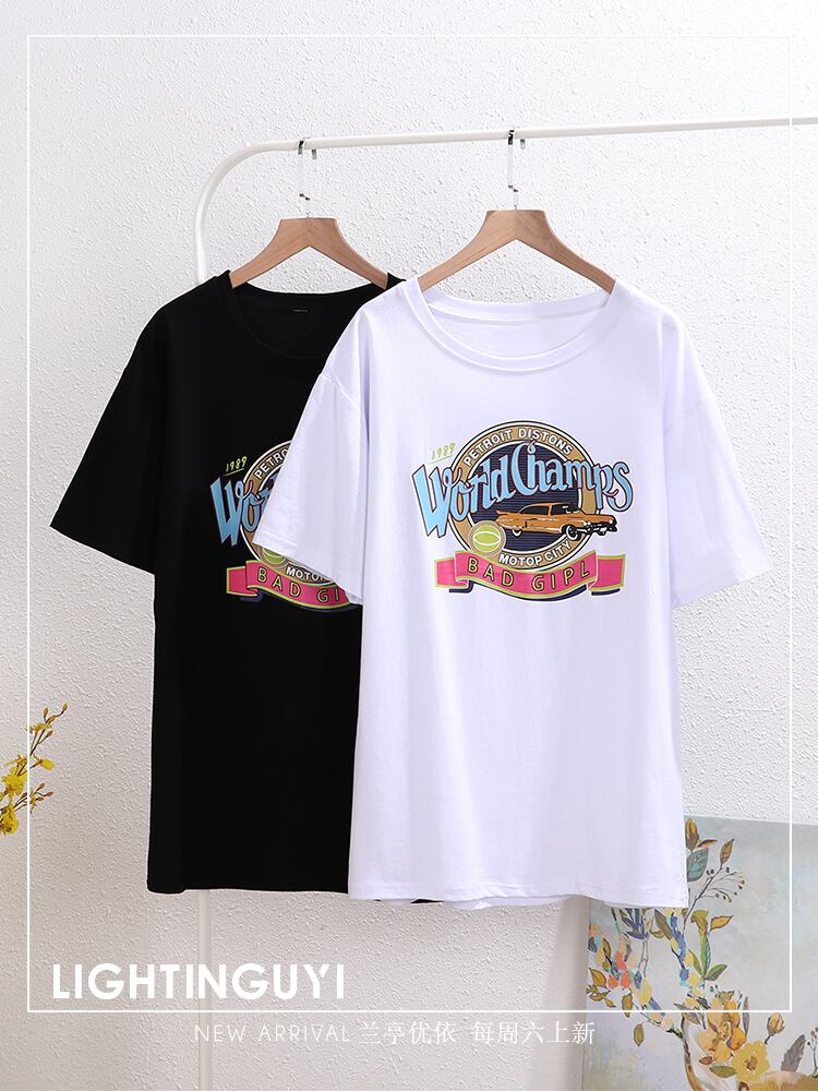 夏の新しいラウンドネックの白い半袖Tシャツの女性は綿のオールマッチマイクロファットの女性のトップボトミングシャツの潮を緩めます ホワイト コットン サマー 夏物 Oネック TB2-16 TB2-1629488292946