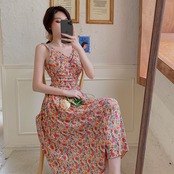 夏のプラスサイズの女性のフレンチウエスト気質年齢を減らすシフォンドレス太った姉妹スーパーフェアリーフローラルスリングドレス 大きめサイズ サマー 夏物 花柄 TB2-10 TB2-1046041329112