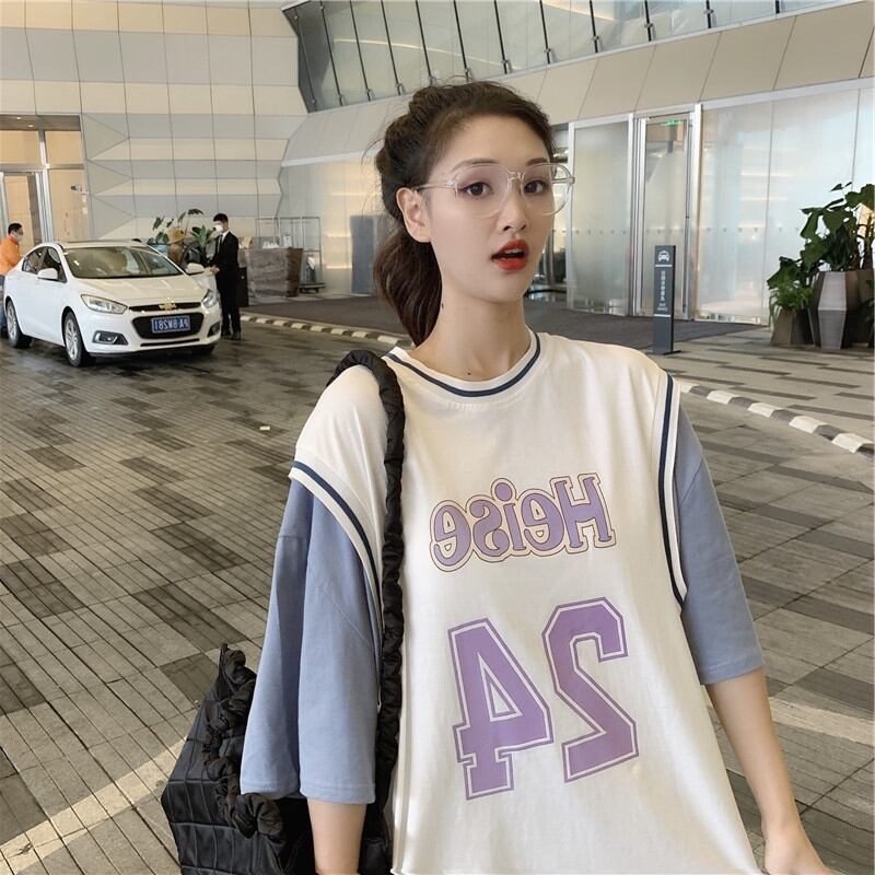 偽のツーピースTシャツ女性半袖2021年新しい夏のトップスデザインセンスインタイドニッチバスケットボールユニム女性 サマー 夏物 TM2-3 TM2-325864326135