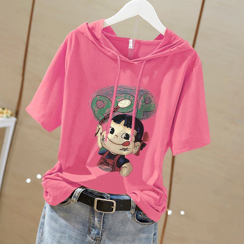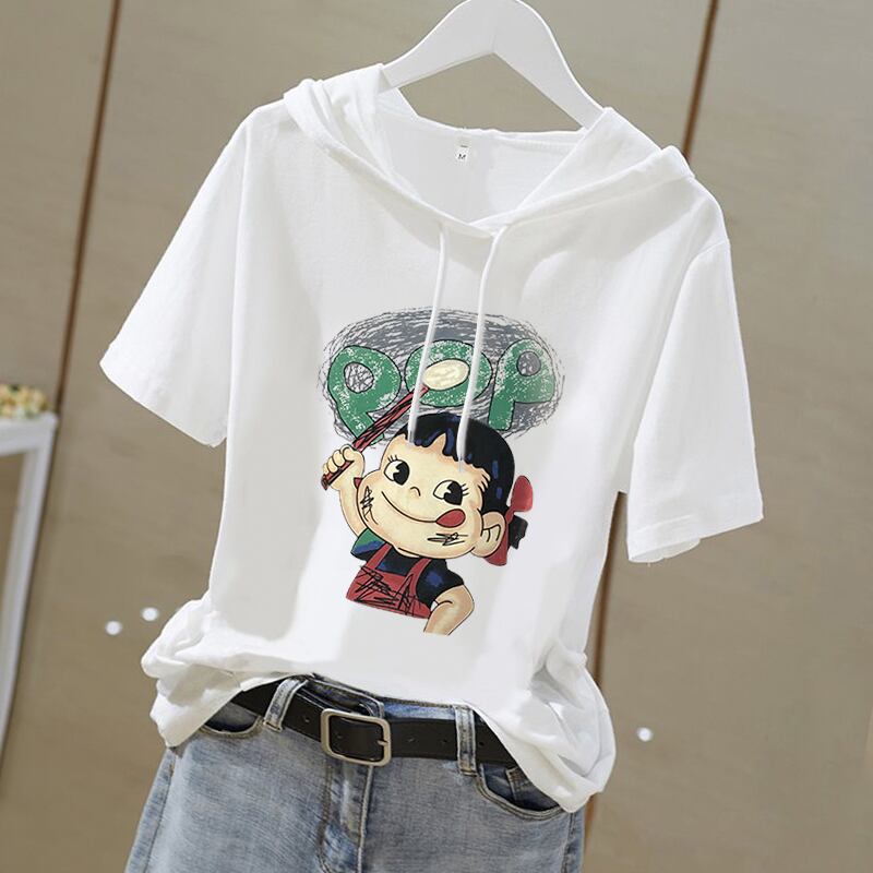 ピュアコットン半袖TシャツレディースルーズフィットTシャツ2021年夏新作スタイルレディースウエスタンスタイルフード付きトップTシャツ サマー 夏物 TM2-3 TM2-352755751707