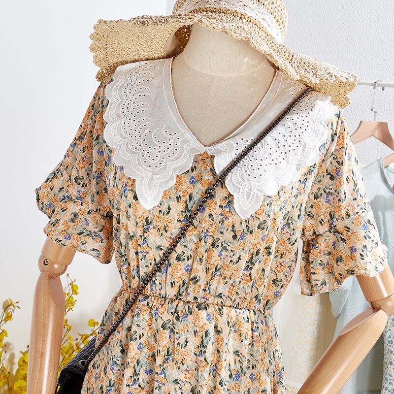 2021年夏の人形の襟フレンチドレスミドル丈プラスサイズの女性のルーズで薄い通気性の花柄シフォンスカート 大きめサイズ サマー 夏物 TB2-16 TB2-1689553000885