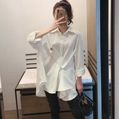 ラージサイズのレディースルーズシフォンシャツ、ウエスタンスタイルのイレギュラーカバーベリーストライプ気質シャツ、ファットシスター春秋 大きめサイズ スプリング 春物 オータム 秋物 TB2-10 TB2-1030361040188