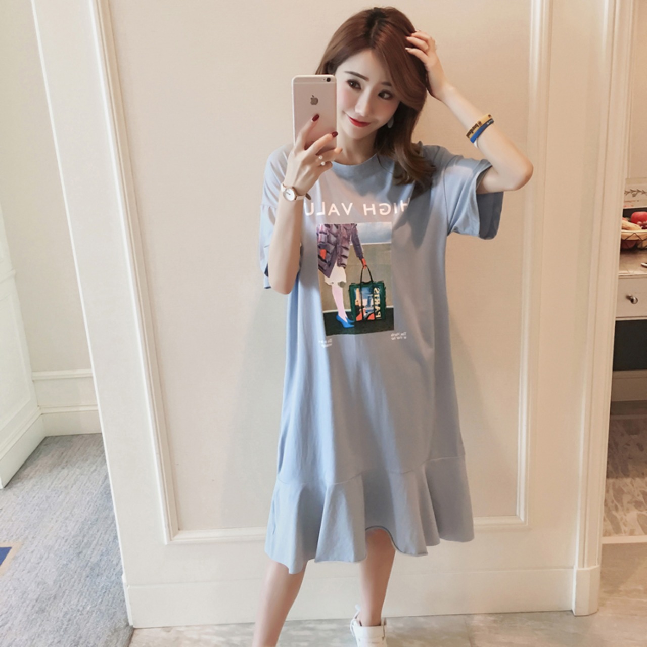 2021年春新製品膝上コットンTシャツスカートレディース半袖超ロングフィッシュテールドレスロングスカートボトミングスカート夏 スプリング 春物 サマー 夏物 TB2-16 TB2-1675551197383