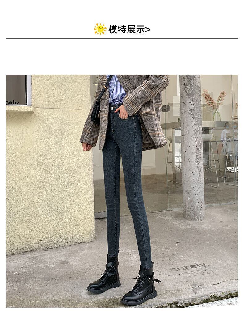 秋と冬のショートジーンズの女性用ズボンに加えて、ベルベットの厚み、アウターウェア、ハイウエストのコロケーション、高い秋の服、8人の小さな人々 ハイウェスト オータム 秋物 ウィンター 冬物 TM2-5 TM2-595702291038