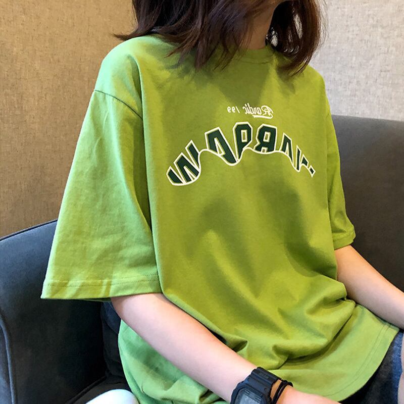 サマーコットンTシャツレディースタイドブランド原宿風BFレタールーズ半袖サマーアボカドグリーンマッチャグリーントップス かわいい 夏物 TM2-3 TM2-35985945875