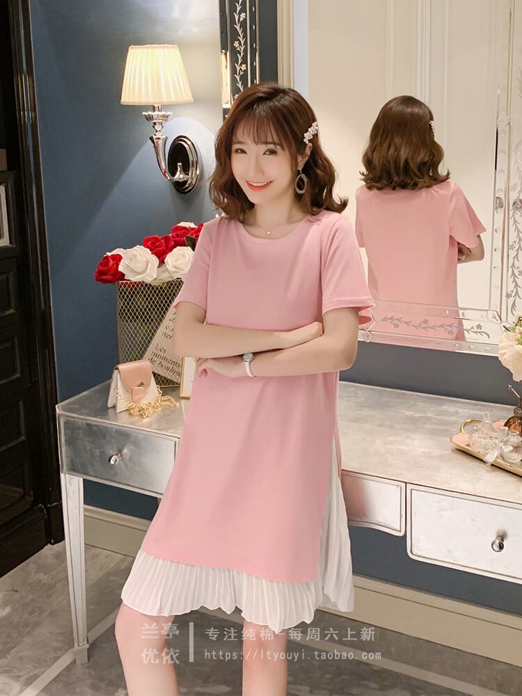 2021年夏バージョンのラージサイズミドル丈TシャツシフォンプリーツAラインスカートルーズで薄いスプリットトップドレス 大きめサイズ サマー 夏物 TB2-16 TB2-1643780558671