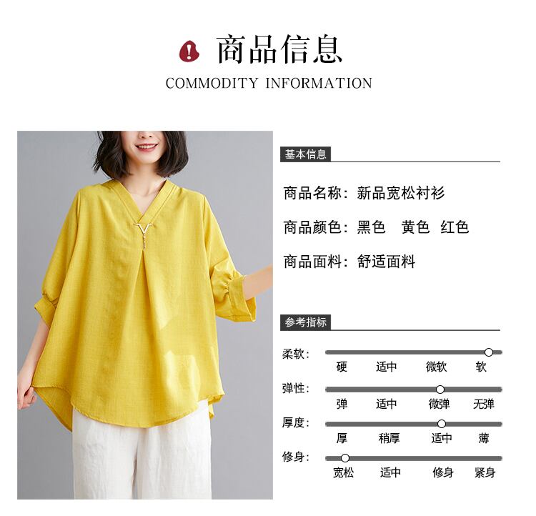 2021年夏のニュースタイルピュアカラーコットンとリネンのルーズVネックシャツレディーススリーブバックシングルブレストカジュアルトップ サマー 夏物 TB2-12 TB2-1217279003855