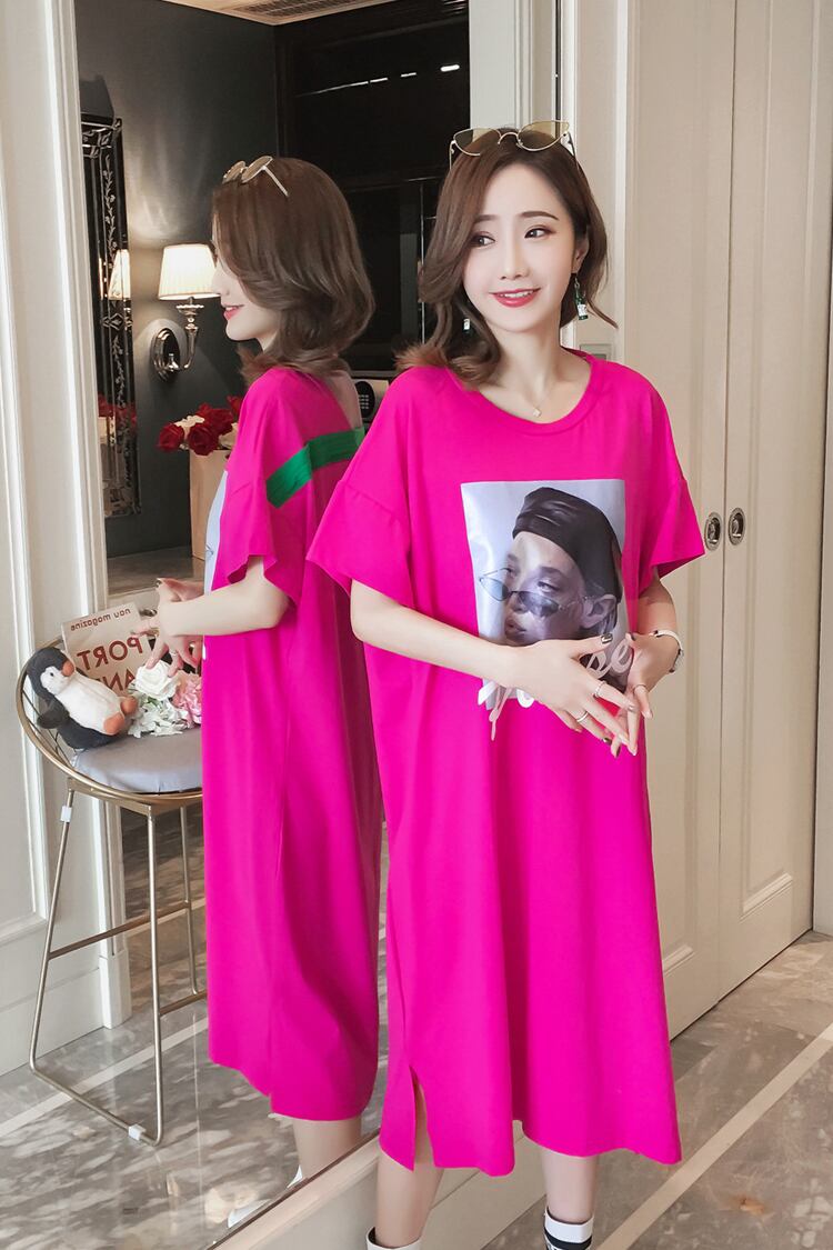 夏の計画背中の開いた女性のゆるい大きいサイズのスプリットTシャツドレス膝上に長い半袖トップスプリング ショート ロング ハーフスリーブ 大きめサイズ 春物 サマー 夏物 TB2-16 TB2-1685872473650
