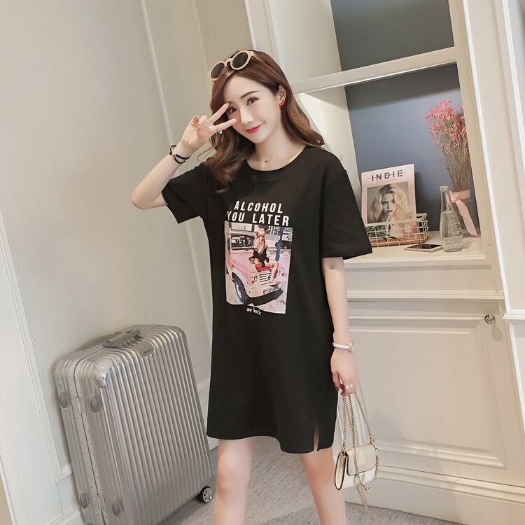 2021年春プラスサイズバージョンの純綿プリント半袖Tシャツ女性アバタースプリットミドル丈ボトミングシャツトップ夏 コットン 大きめサイズ スプリング 春物 サマー 夏物 ピュア TB2-16 TB2-1655397154697