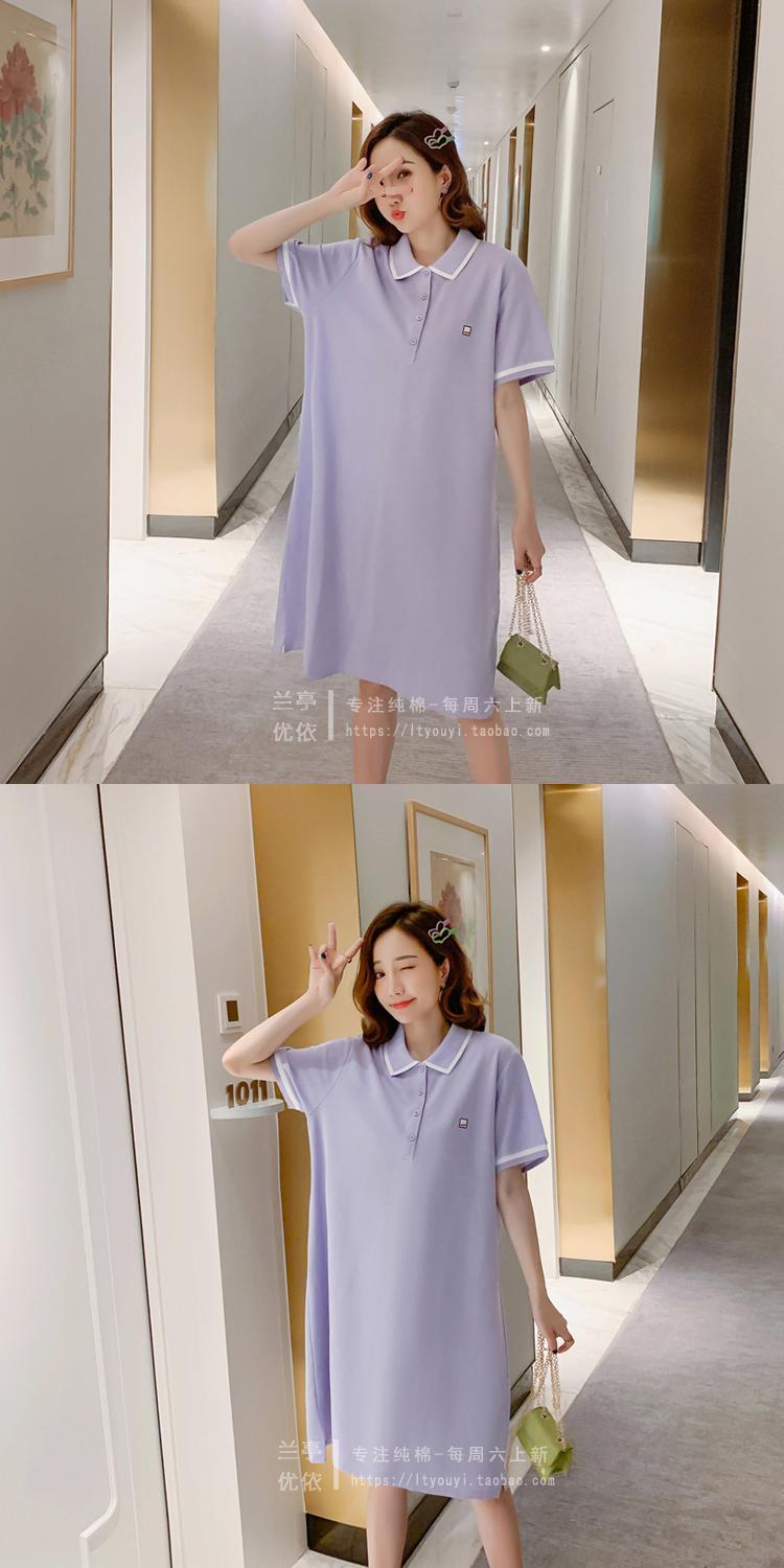 2021年パープルサマーウィメンズプラスサイズポロシャツウィメンズ半袖ルーズトップラペルミドル丈コットンTシャツスカート春 大きめサイズ スプリング 春物 夏物 TB2-16 TB2-164194106115