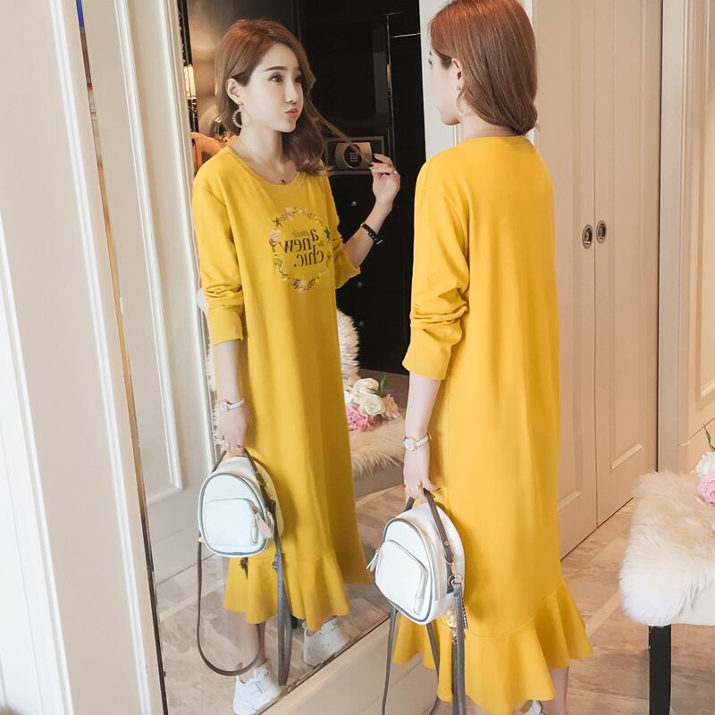 2021年秋新商品バージョンロングオーバーザニー長袖コットンTシャツスカート学生ルーズフィッシュテールスカートドレス春 スプリング 春物 オータム 秋物 TB2-16 TB2-1699808657066
