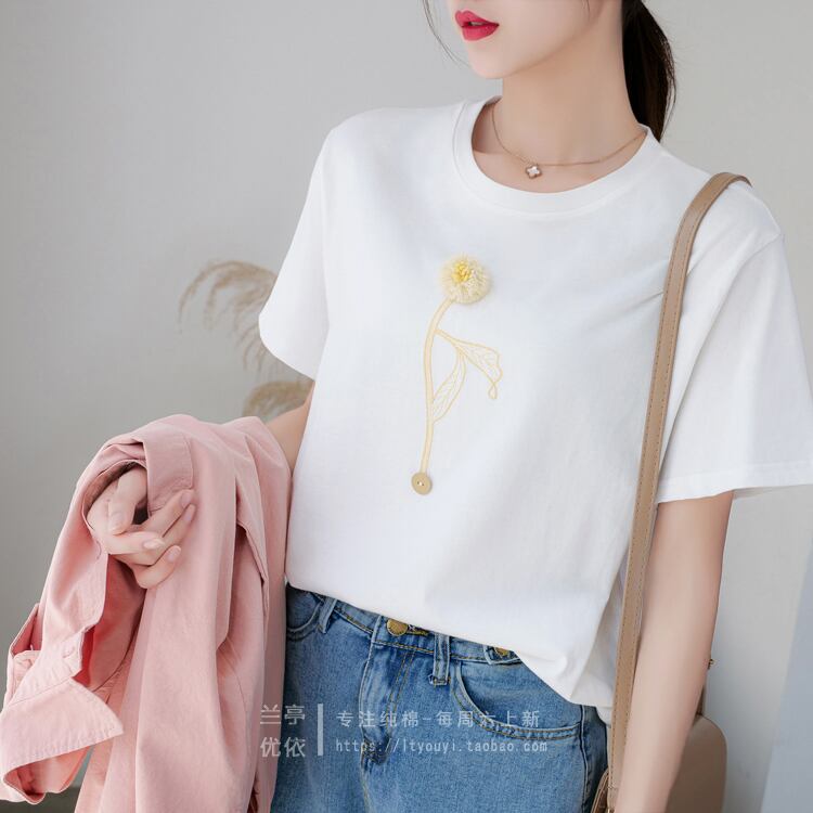 2021年新商品ピュアコットンイエロースモールフラワーTシャツ女子学生半袖サマートップスモールフレッシュでキュートなボトミングシャツ 大人ガーリー スウィート カジュアル 夏物 フラワーデザイン TB2-16 TB2-1650135831510