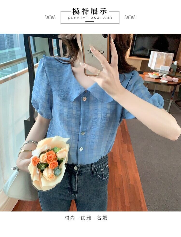 シャツ女性デザインセンスニッチサマードレス2021新しい女性香港スタイル人形襟シフォンカーディガン半袖インススモールシャツ 夏物 TB2-6 TB2-636588903118