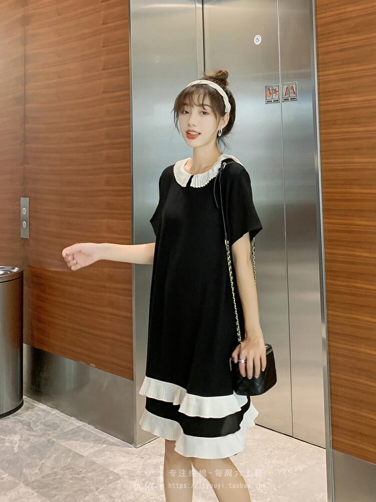 夏の新作ファッションスリム半袖Tシャツスカートコットンラージサイズルーズカバーミートドールカラー一言ステッチワンピース 大きめサイズ サマー 夏物 TB2-16 TB2-1610704175027