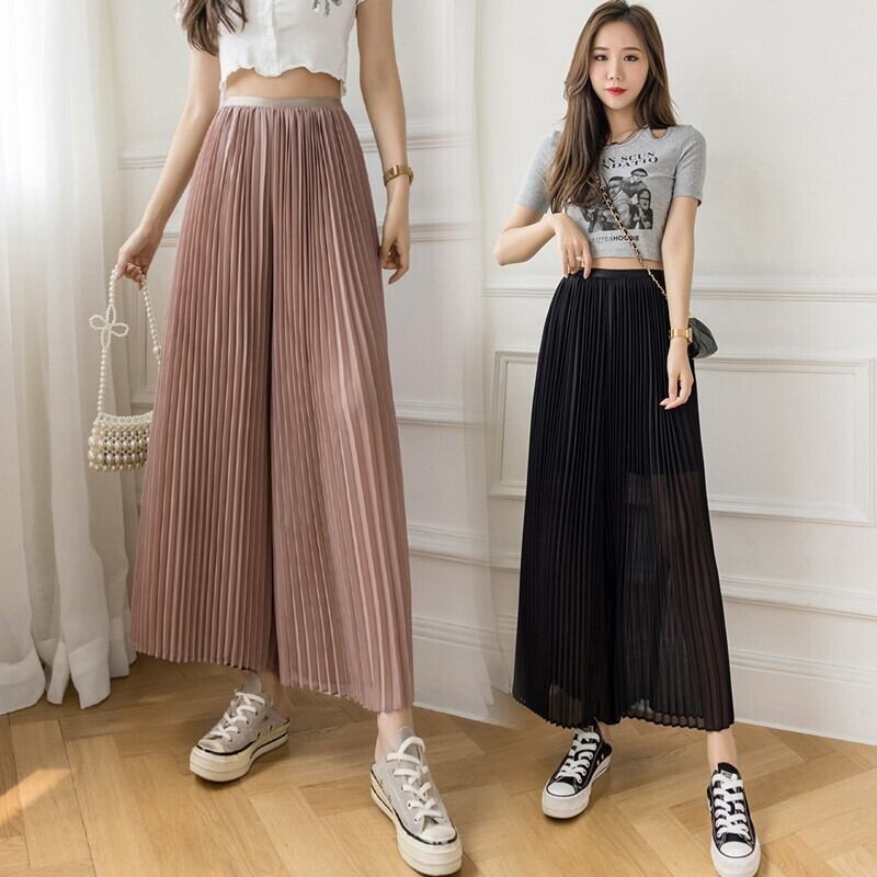 パンツウィメンズ2021ホットスタイルシンシフォンパンツナインポイントワイドレッグパンツルーズプリーツキュロットパンツ ワイドパンツ TB2-6 TB2-697405502651