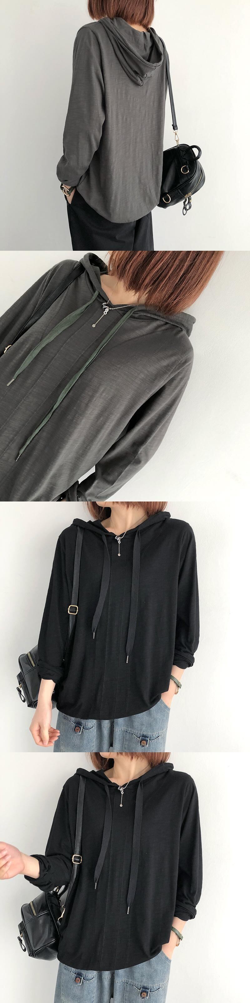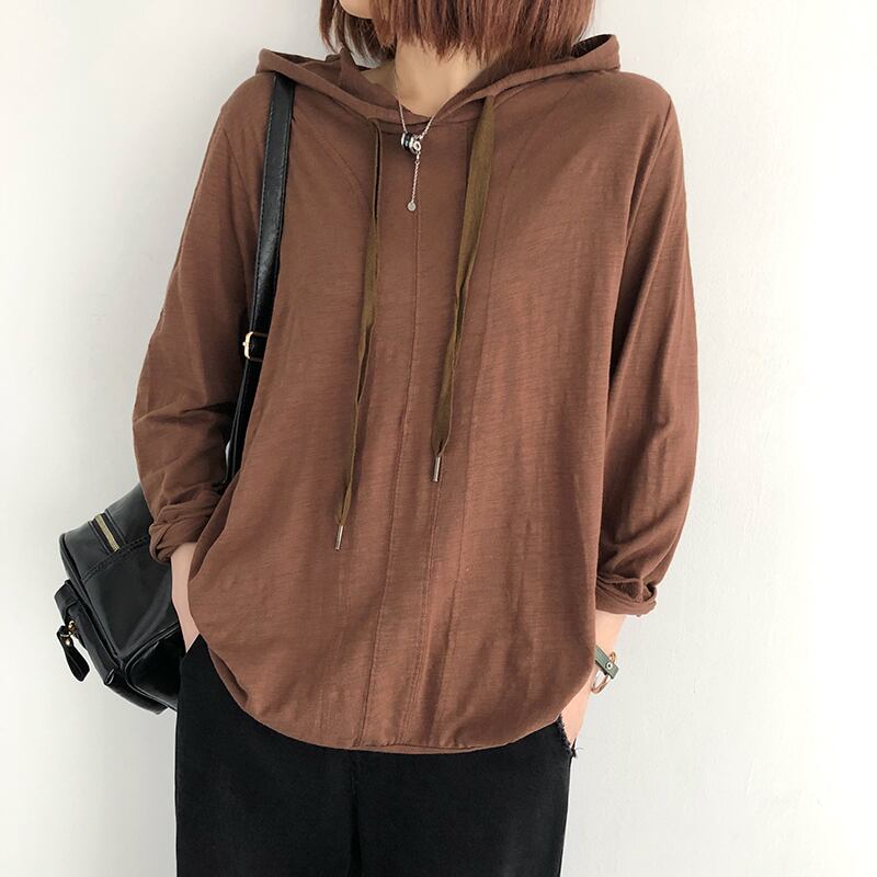 スラブコットンTシャツレディース長袖春秋新作ルーズ無地フードトップピュアコットンアートカジュアルボトミングシャツタイド ロング スプリング 春物 オータム 秋物 ソリッドカラー TB2-9 TB2-945001053081