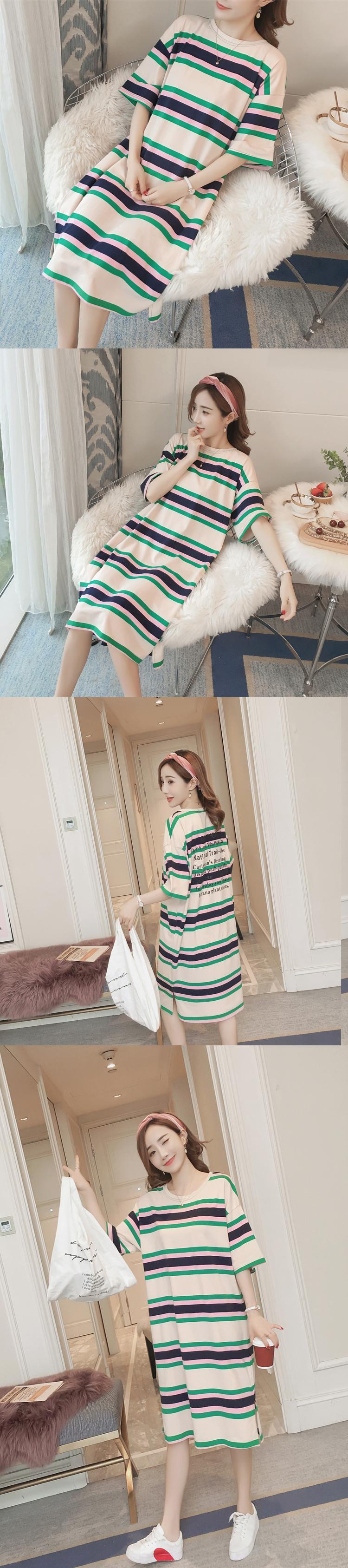 プリント半袖純綿ラージサイズコンピオネートレディース春ルーズミドル丈ストライプ半袖Tシャツドレス夏のバージョン コットン 大きめサイズ スプリング 春物 サマー 夏物 ピュア TB2-16 TB2-1677308581617