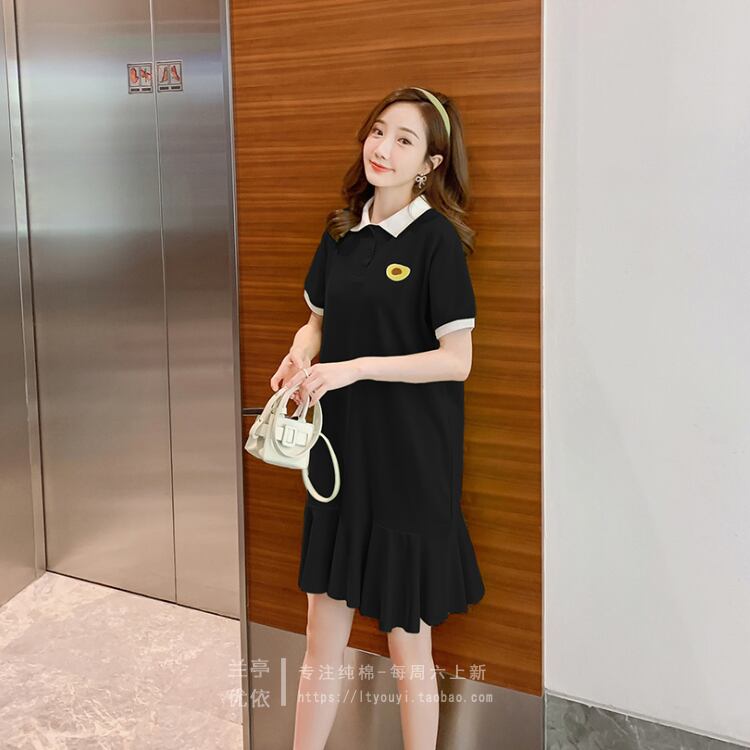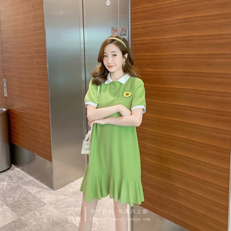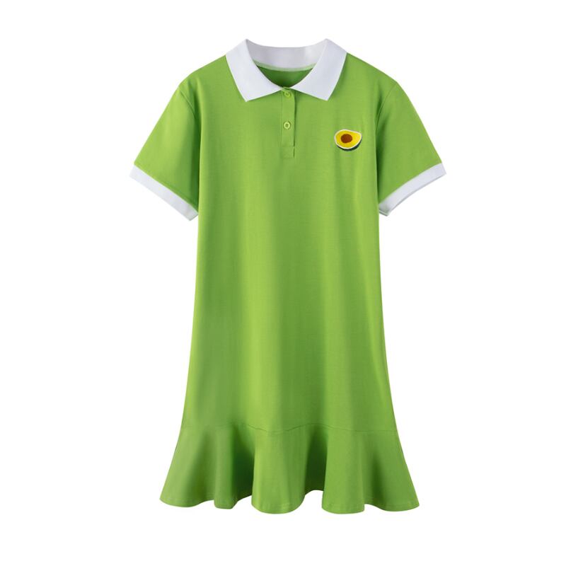 新しいミドル丈POLOカラー半袖コットンTシャツスカート人気のアボカドグリーントップフィッシュテールドレスのバージョン TB2-16 TB2-1653996077896