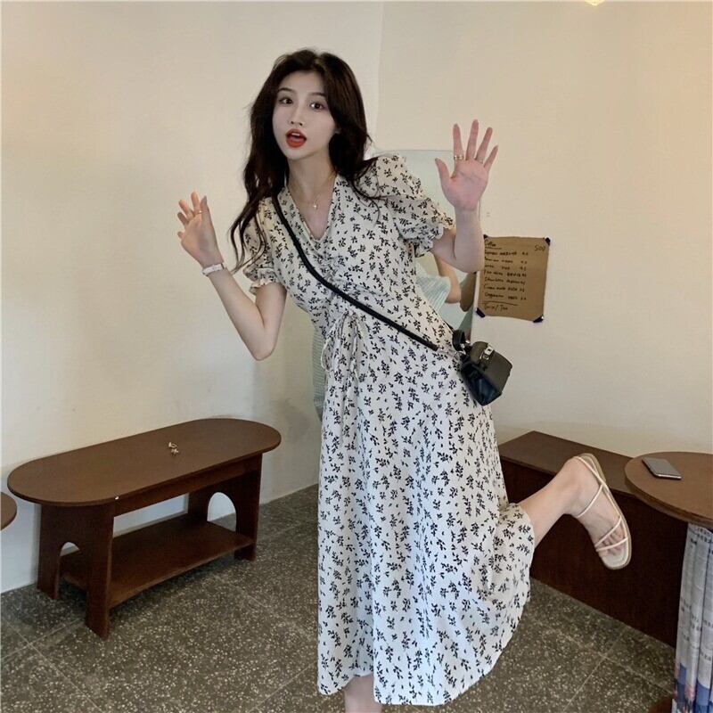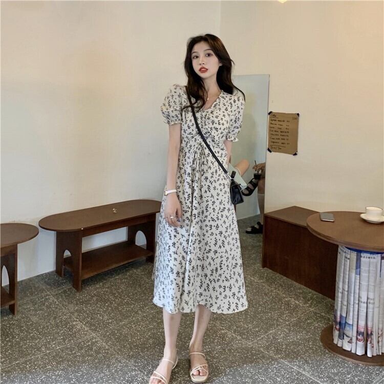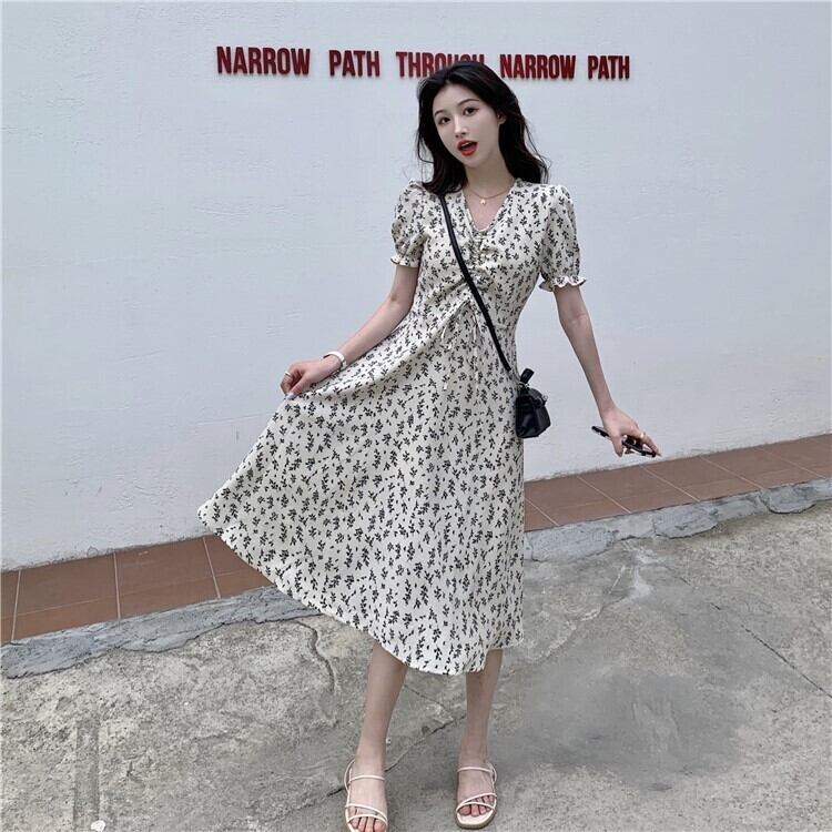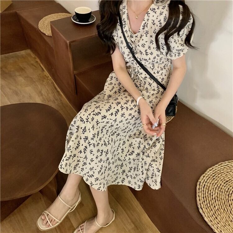 サンムジファストファッション婦人服〜新作花柄Vネックスモールミドル丈半袖ワンピースレディース TB2-6 TB2-688439384383