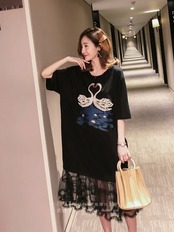 2021年春先半袖プラスサイズTシャツスカートレディースミドル丈メッシュステッチ新作5点袖トップスコンピオン夏 大きめサイズ スプリング 春物 サマー 夏物 TB2-16 TB2-1695326643234