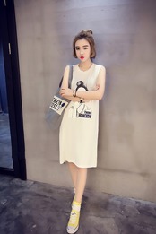2021年夏の新作スタイルミドル丈ルーズコットンノースリーブTシャツ女子学生ボトミングシャツトップスタイドT春 スプリング 春物 サマー 夏物 TB2-16 TB2-1665221038974
