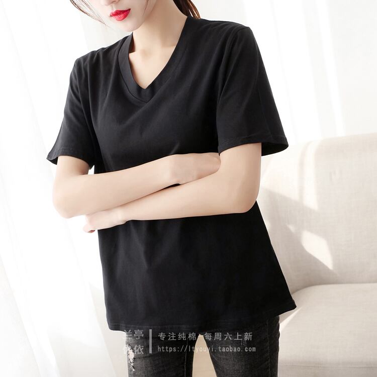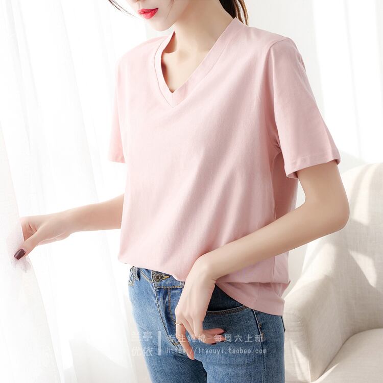 ピュアコットン半袖レディースニューサマーピンクTシャツレディースVネックルーズ無地シンプルトップカジュアルコットンTシャツ 夏物 ソリッドカラー TB2-16 TB2-1622590285369