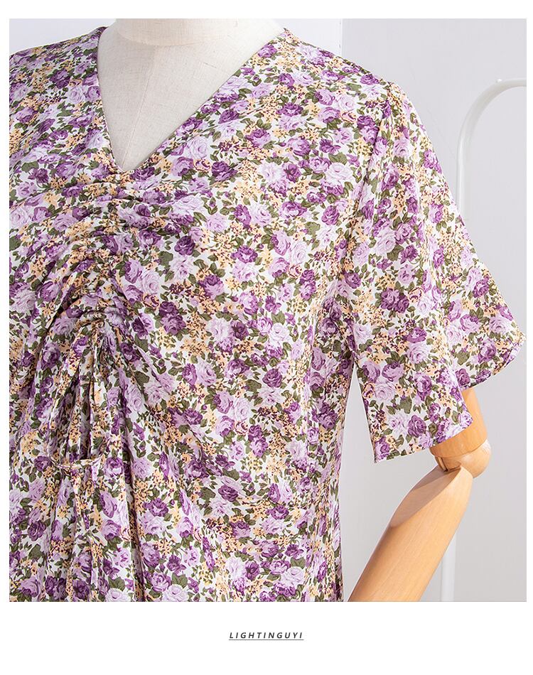 プラスサイズサマーファットシスタースリム半袖ワンピースアイスシルクシフォンVネックルーズベリーミドル丈ベーススカート 大きめサイズ 夏物 TB2-16 TB2-1628173474949