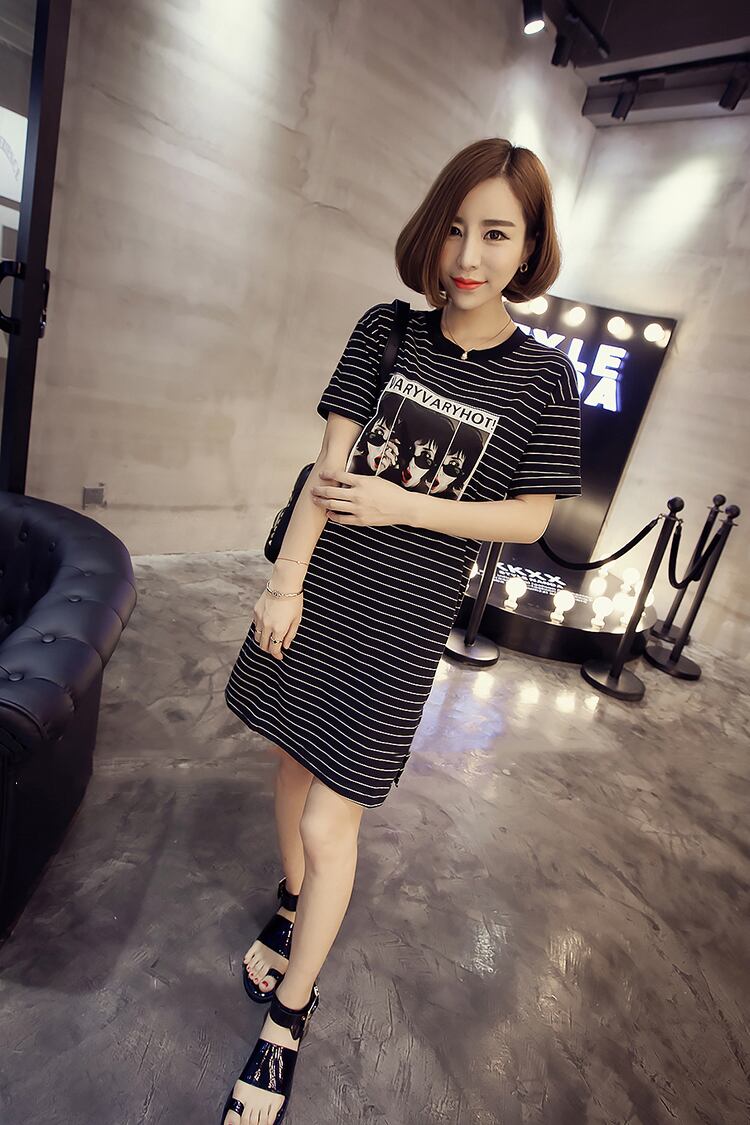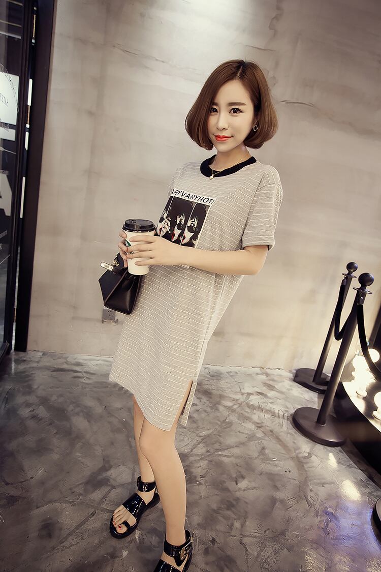 2021年の新しいプラスサイズの女性用ミドル丈コットンボトミングシャツ学生グレーストライプ半袖Tシャツ女性春と夏 大きめサイズ スプリング 春物 サマー 夏物 TB2-16 TB2-1693922354949