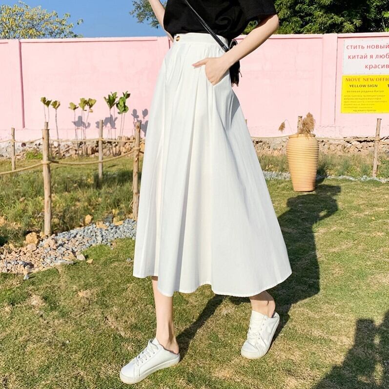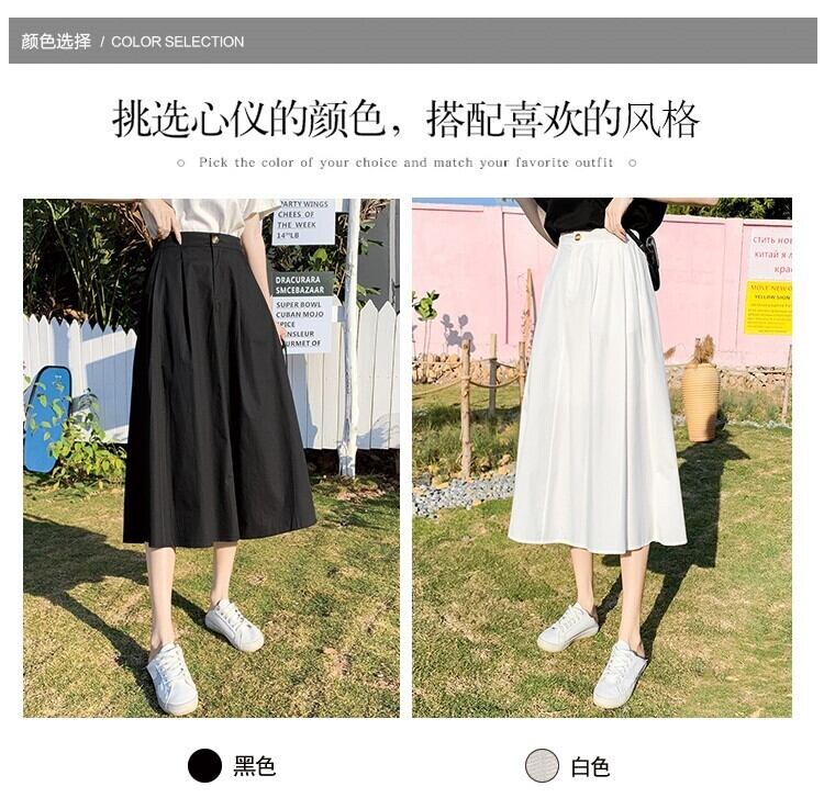 ハーフレングススカート女性2021年春夏新作ミドル丈気質細黒ハイウエストaラインオールマッチスカートドレープ付き ブラック スプリング 春物 サマー 夏物 TB2-6 TB2-62147249939