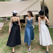 2021年夏の新作フレンチデザインセンスVネックスモール気質ロングスカートヘップバーン風サスペンダーワンピース サマー 夏物 TB2-6 TB2-633055313633
