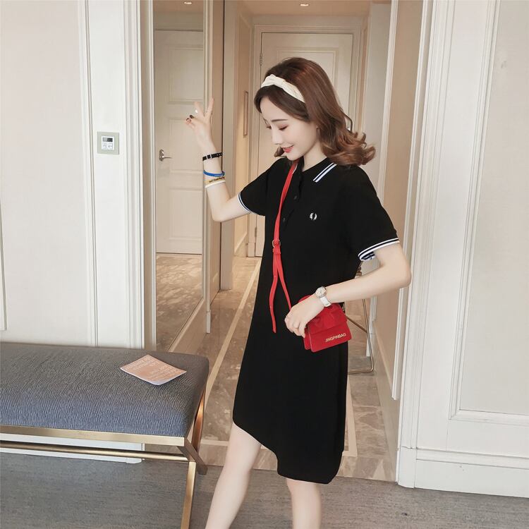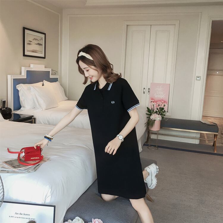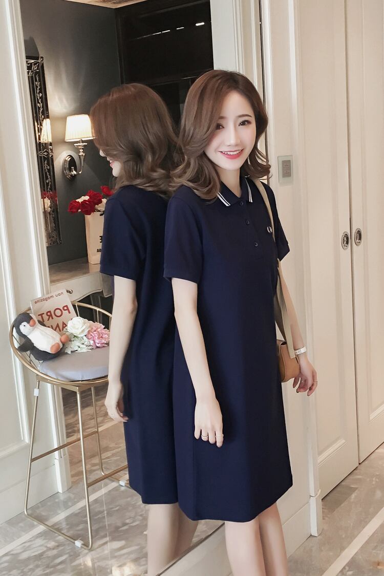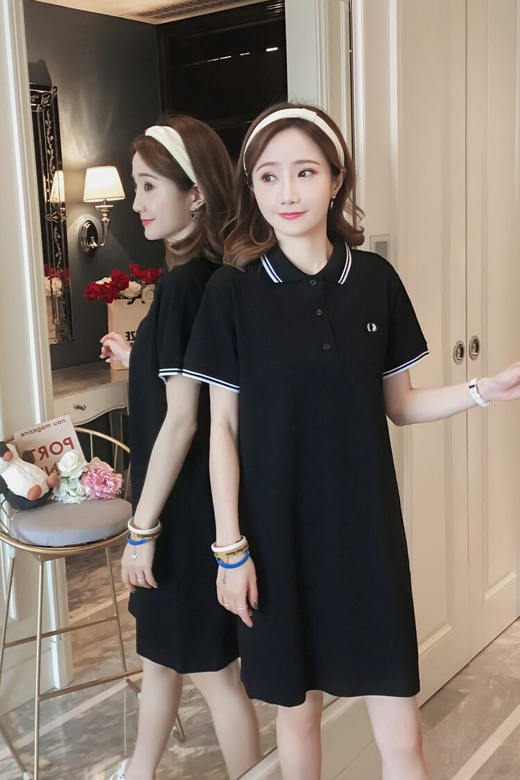 2021年夏ポロシャツスカートルーズラージサイズワンピース半袖ミドル丈ラペルTシャツスカート女子学生春 大きめサイズ スプリング 春物 サマー 夏物 TB2-16 TB2-1640759817934