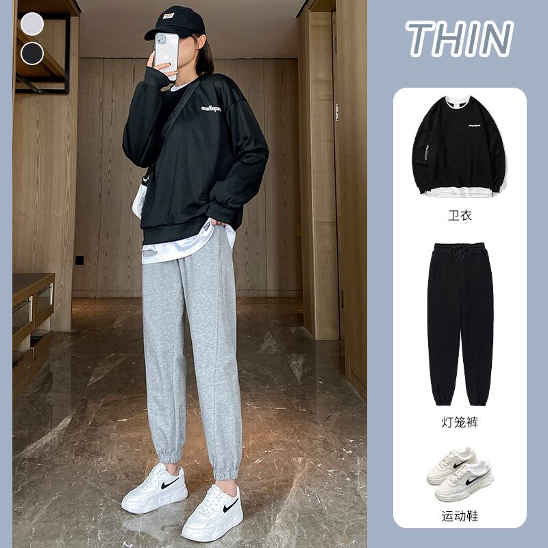 ベルベットのネクタイの足が付いたグレーのスウェットパンツの女性用カジュアルパンツは薄く、秋と冬のすべてにマッチした厚みと暖かさ、綿のズボンを着用しています コットン オータム 秋物 ウィンター 冬物 TM2-4 TM2-416832495928