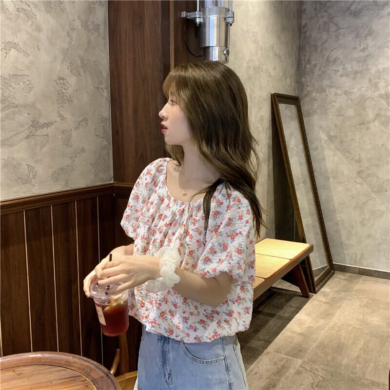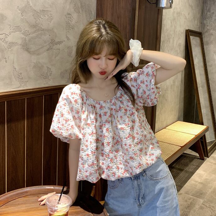ワンショルダーシフォン半袖Tシャツレディースサマーニューデザインセンスニッチショートパラグラフワイルドフローラルパフスリーブトップス 夏物 花柄 TB2 TB267250847821