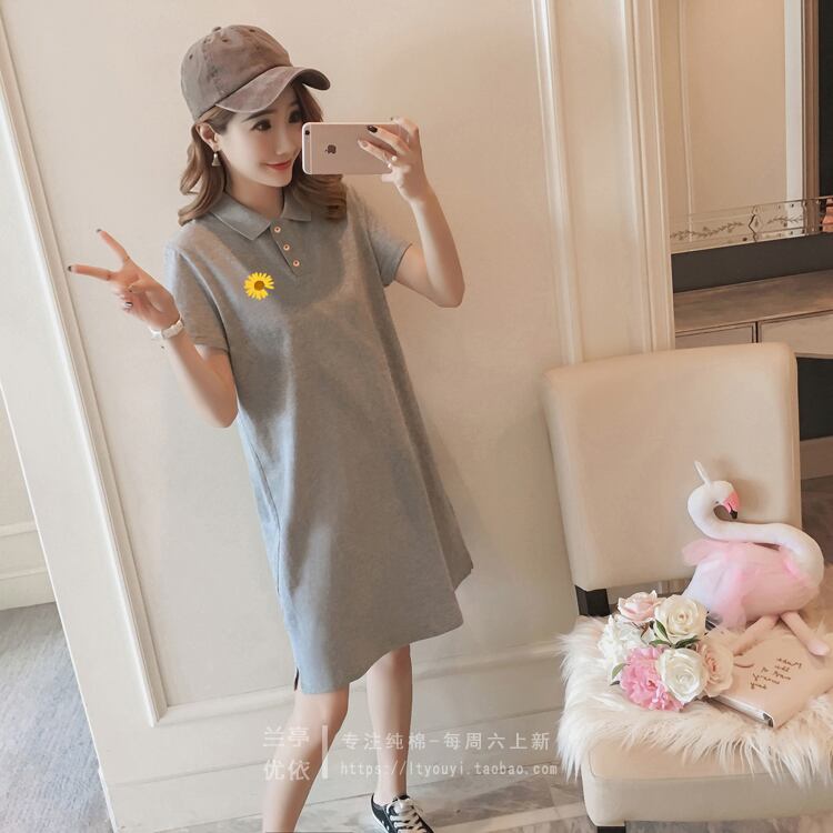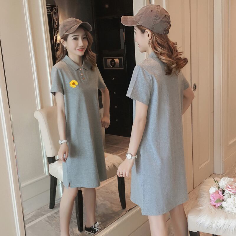ヨーロッパグッズラージバージョンPOLOカラー半袖Tシャツスカート女性新疆ピュアコットンサマーニューインススモールデイジーミドル丈トップ 夏物 ヨーロピアン TB2-16 TB2-1627137491188