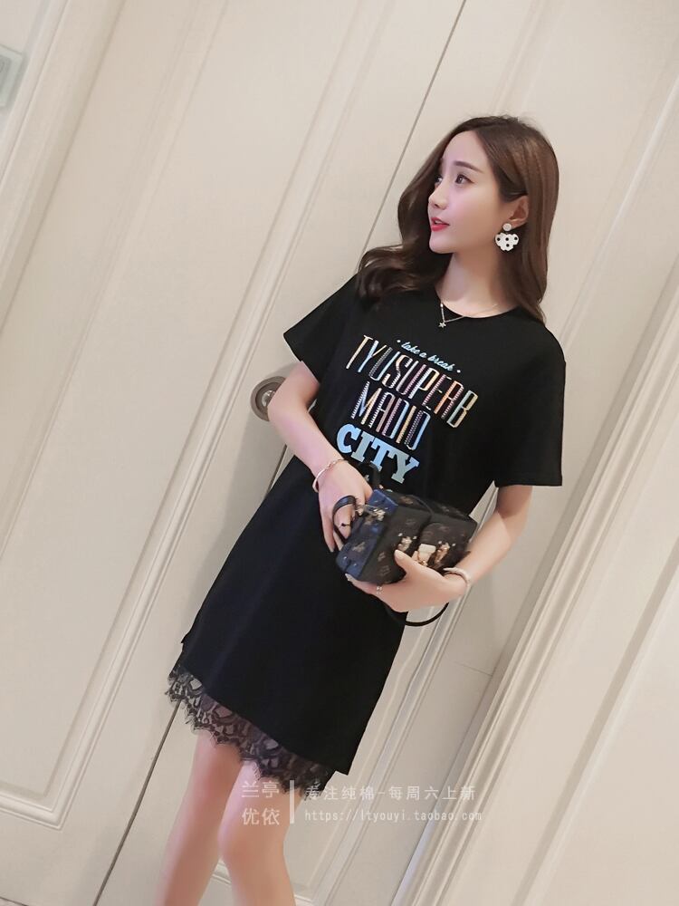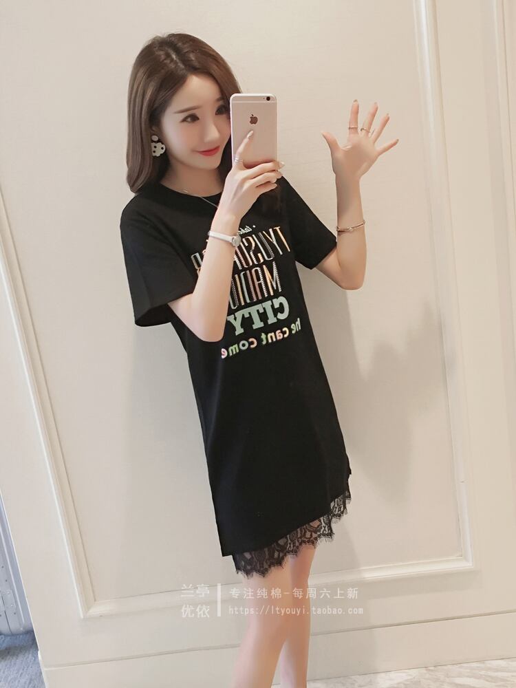 レースステッチTシャツスカートレディースインナーウェアアウターウェアボトミングシャツブラックは薄手ミドル丈コットントップ夏 サマー 夏物 TB2-16 TB2-1676379670321