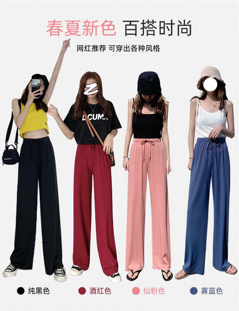 ブルゴーニュワイドレッグパンツ、ハイウエストドレープ、ルーズストレート、アイスシルク、モップ、夏の薄い銅アンモニアシルクドレープ女性用ズボン サマー 夏物 TM2-5 TM2-52861038996
