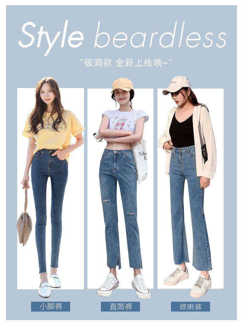 スキニージーンズの女性のハイウエストは細く、9ポイント、小さな足は高く、小さな145ペンシルのダークブルーのサマーパンツが付いていました ハイウェスト 夏物 TM2-5 TM2-597154974664