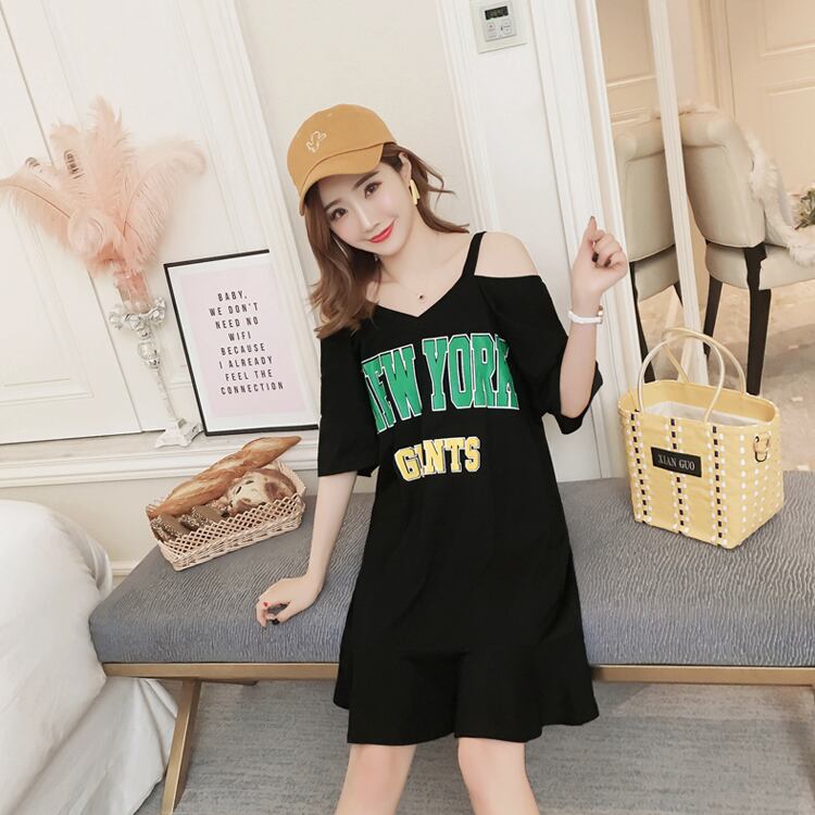 2021年夏プラスサイズ純綿ミドル丈半袖Tシャツスカート黒ストラップレス小フィッシュテールスカートドレス ブラック コットン 大きめサイズ サマー 夏物 ピュア TB2-16 TB2-1644330944239