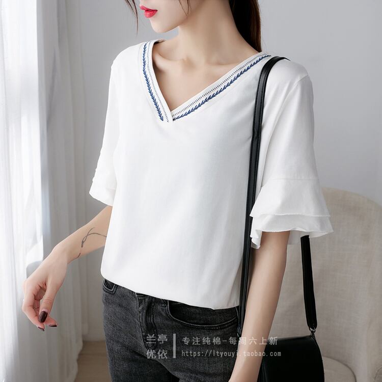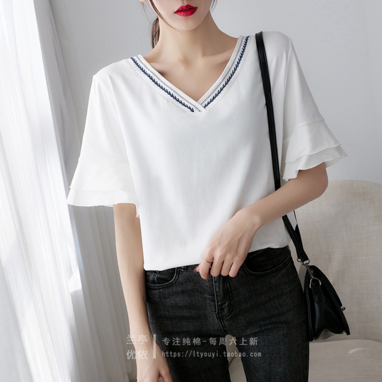 2021年夏の新作シンプルピュアカラー半袖Tシャツレディーススリムスリミング半袖TシャツVネックボトミングシャツトップス サマー 夏物 TB2-16 TB2-1629900737330