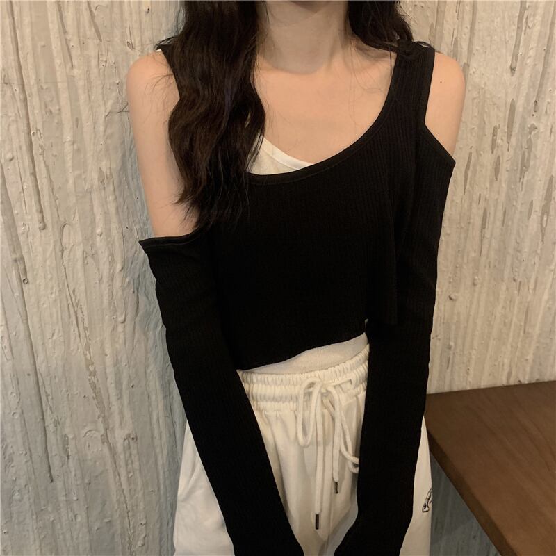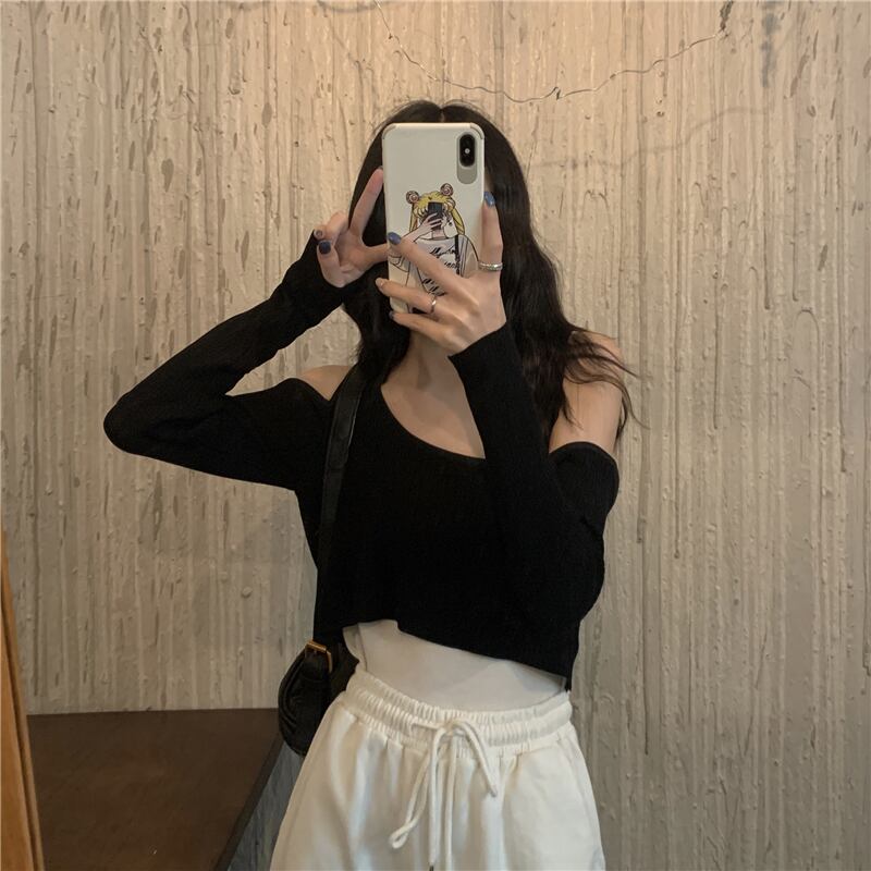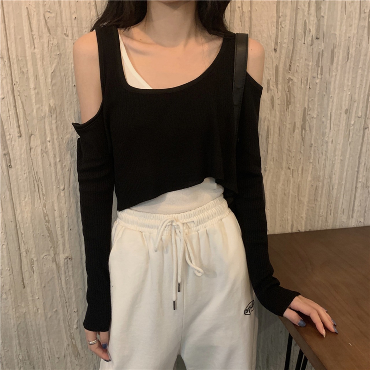 フェイクツーピースショートトップスレディースストラップレス鎖骨セクシーローネックインナーボトミングデザインセンスニッチ長袖セーター ロング TB2 TB292144225486