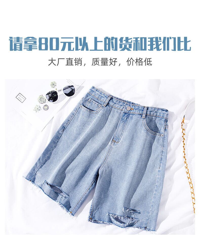 破れたデニムショーツ女性の夏の薄いセクションストレート香港フレーバースーパーファイヤーcecルーズ5ポイントハイウエストシン5ポイントミドルパンツ ハイウェスト サマー 夏物 ブルマー TM2-5 TM2-54361734259