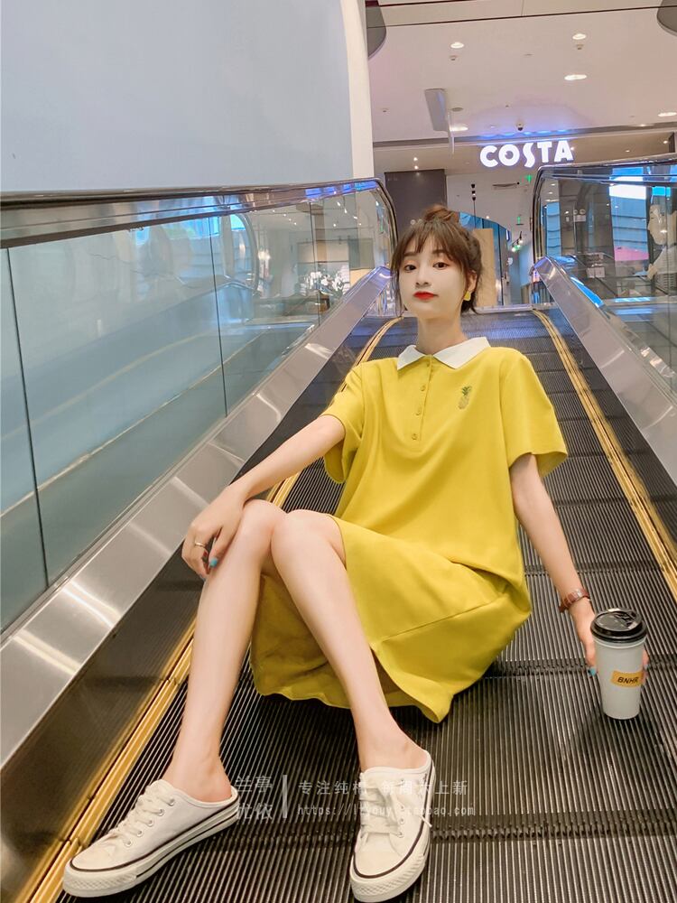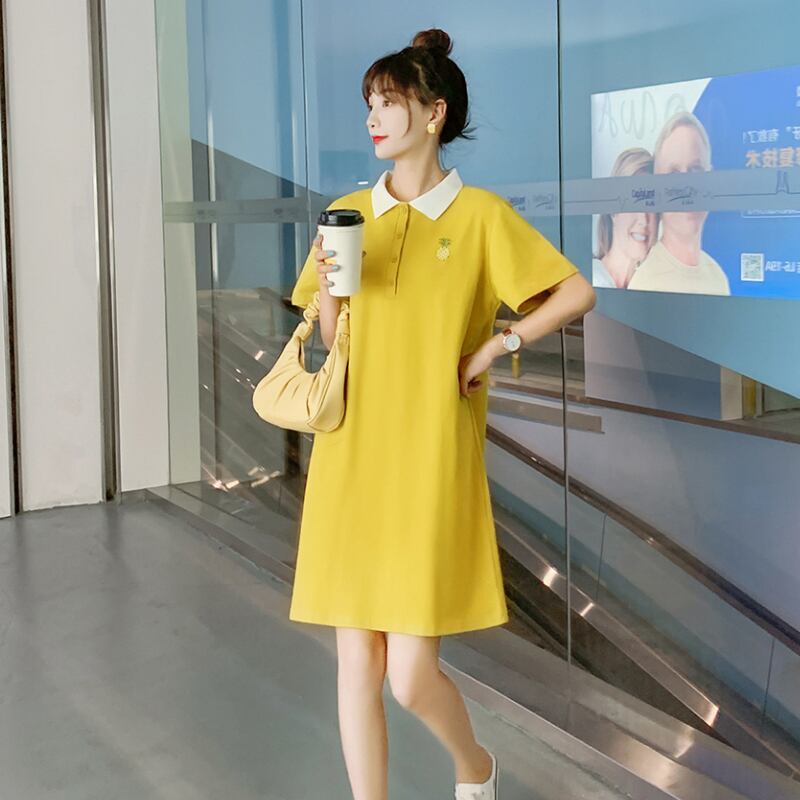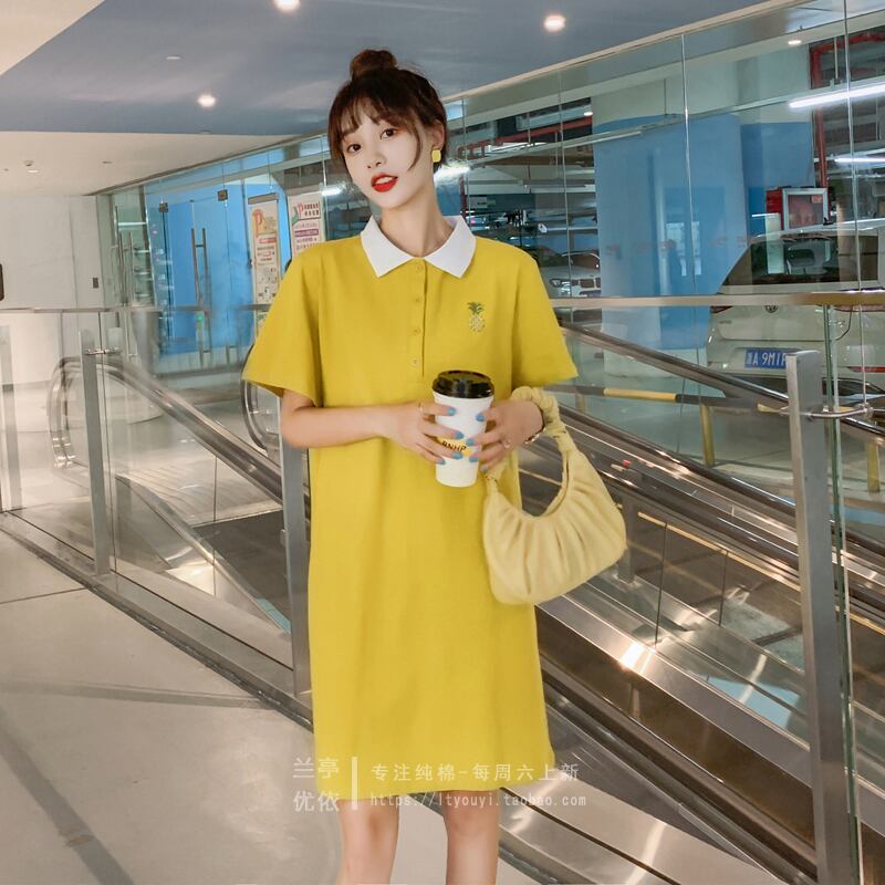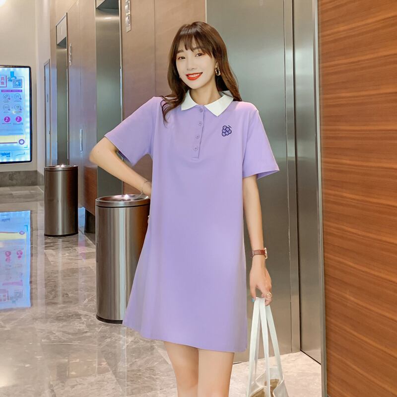 ミドル丈Tシャツスカート女性ルーズパープルサマードレス2021ネットレッドイン半袖ポロシャツドレスコンピオネイトタイド 夏物 TB2-16 TB2-1655513157559