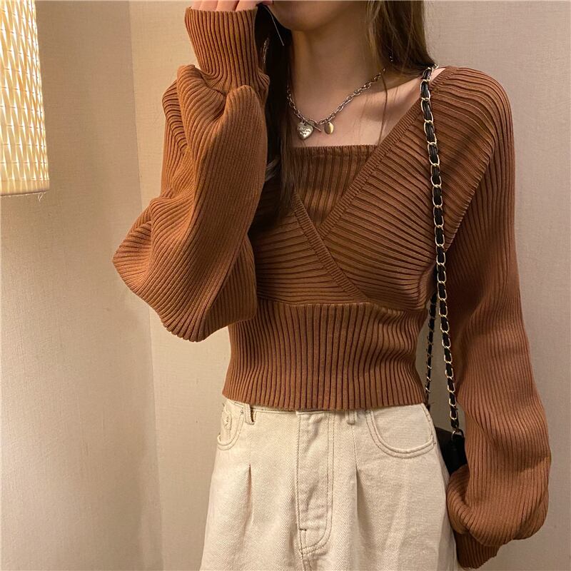 オーバーコート付きセーター2021新しい女性用ショートウエスタンスタイルのフェイクツーピーススリングストラップレス長袖ニットボトミングシャツ ロング TB2 TB212744102853