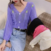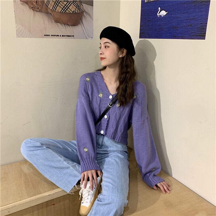 春のルーズクロップドトップ、ハイウエストパンツデザインセンスVネック長袖bmウィンドカーディガンジャケット女性ニットセーター ハイウェスト ロング スプリング 春物 TB2 TB241093321858