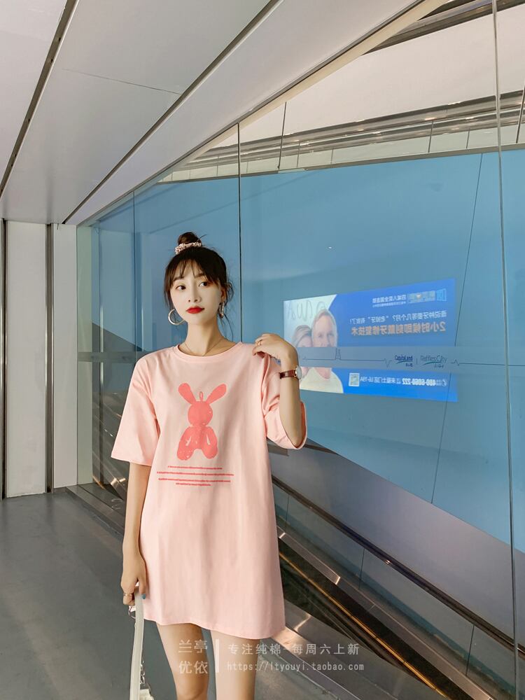 ミッドレングスラージバージョン半袖コットンTシャツドレスサマーエイジリダクションスモールハーフスリーブトップボトミングシャツ春先 スプリング 春物 夏物 TB2-16 TB2-1632613683854