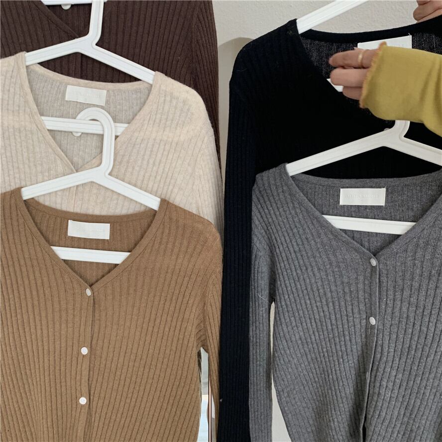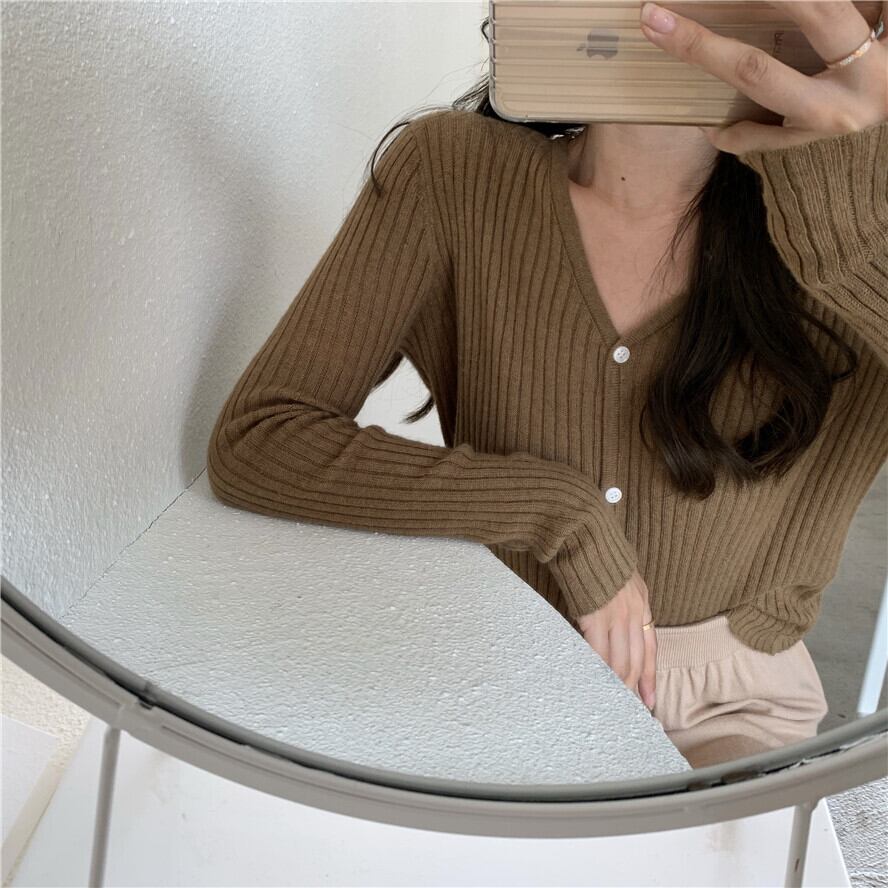 2021年春の新作スリムシンプル香港フレーバーVネックピットニットトップシングルブレストニットカーディガンレディース秋の服 スプリング 春物 オータム 秋物 TB2 TB236972040421