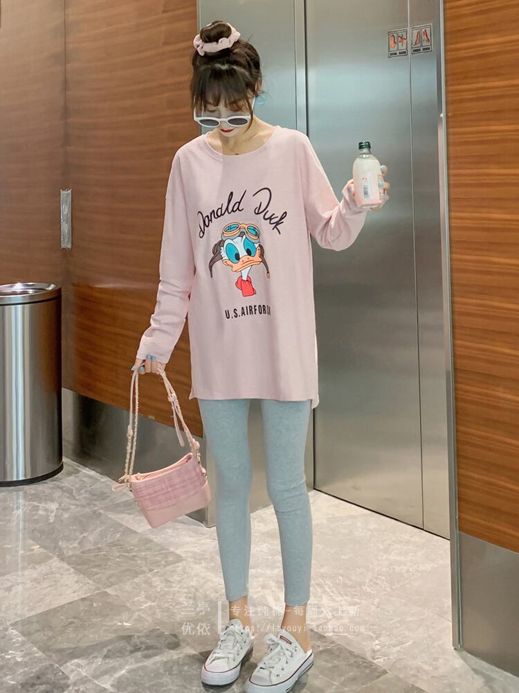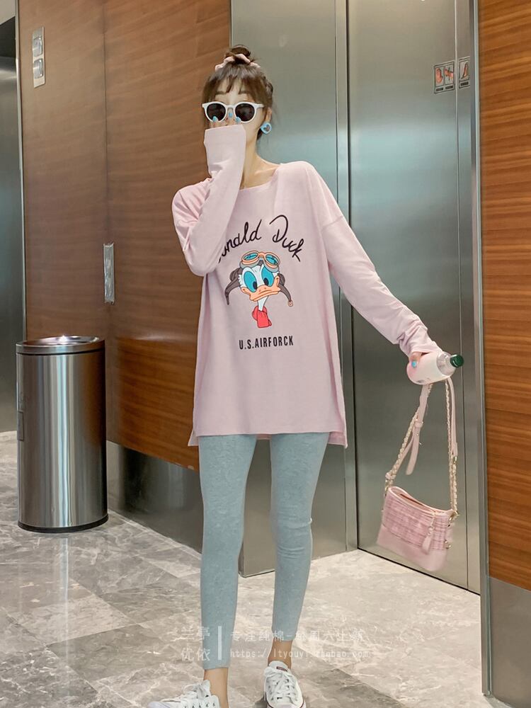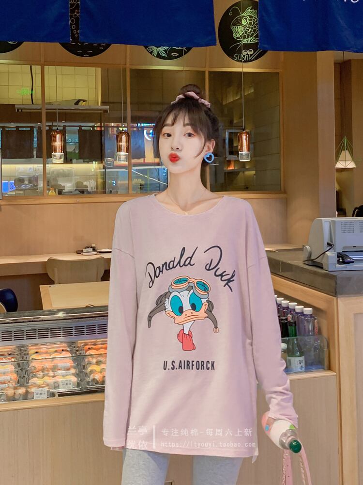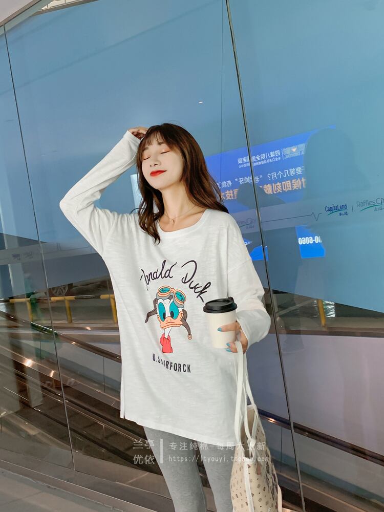 2021年春長袖Tシャツスカートレディースプラスサイズ漫画プリントミドル丈ボトミングシャツ純綿Tシャツトップ秋 ロング コットン 大きめサイズ スプリング 春物 オータム 秋物 ピュア TB2-16 TB2-1628760497014