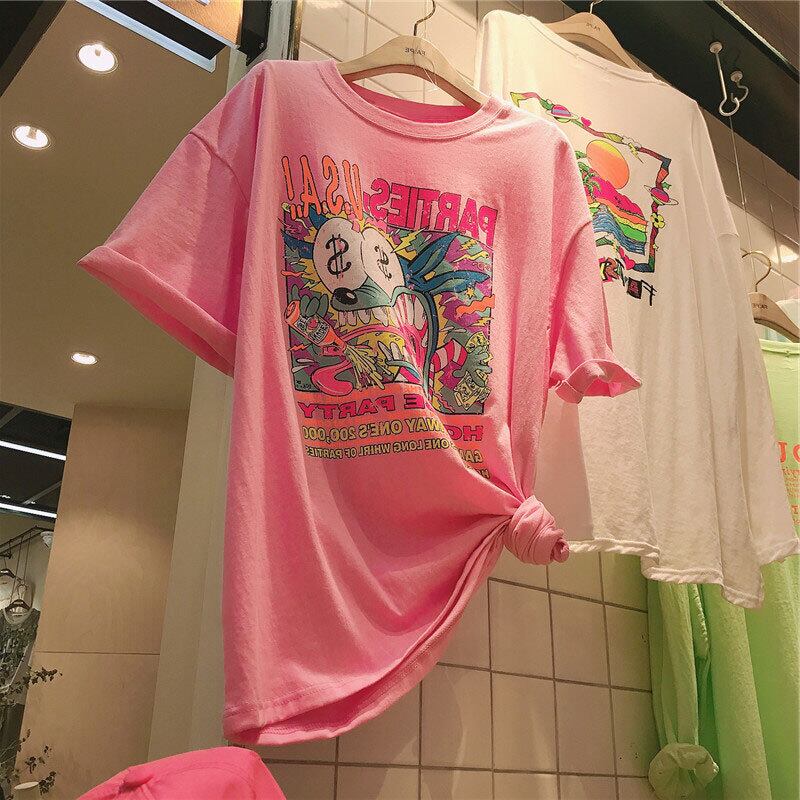 南東大門半袖Tシャツ女性2021年夏新作スウィート漫画ピンクルーズオールマッチブラウス 大人ガーリー キュート カジュアル サマー 夏物 TM2-3 TM2-376200941728