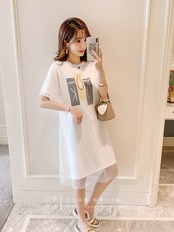 2021年夏の新作ラージサイズフェイク2枚人気ネット糸半袖Tシャツレディースミドル丈ウエスタン風ワンピース 大きめサイズ サマー 夏物 ドレス TB2-16 TB2-1673299517941