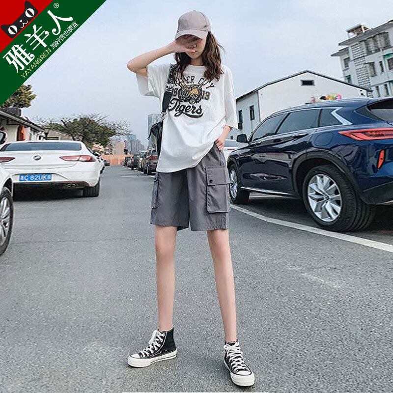 ダークグレーのオーバーオールショーツ女性の夏の薄いセクションルーズハイウエストスリミングカジュアルインタイドデザイン5ポイントパンツ ハイウェスト サマー 夏物 ブルマー TM2-5 TM2-515456094785